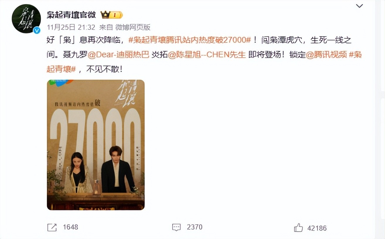 可惜的是,剧集整体却没能延续这份高光表现。开播仅81分钟,热度迅速飙升至25000,可此后便停滞不前,在27000上下徘徊,始终难以突破30000大关。